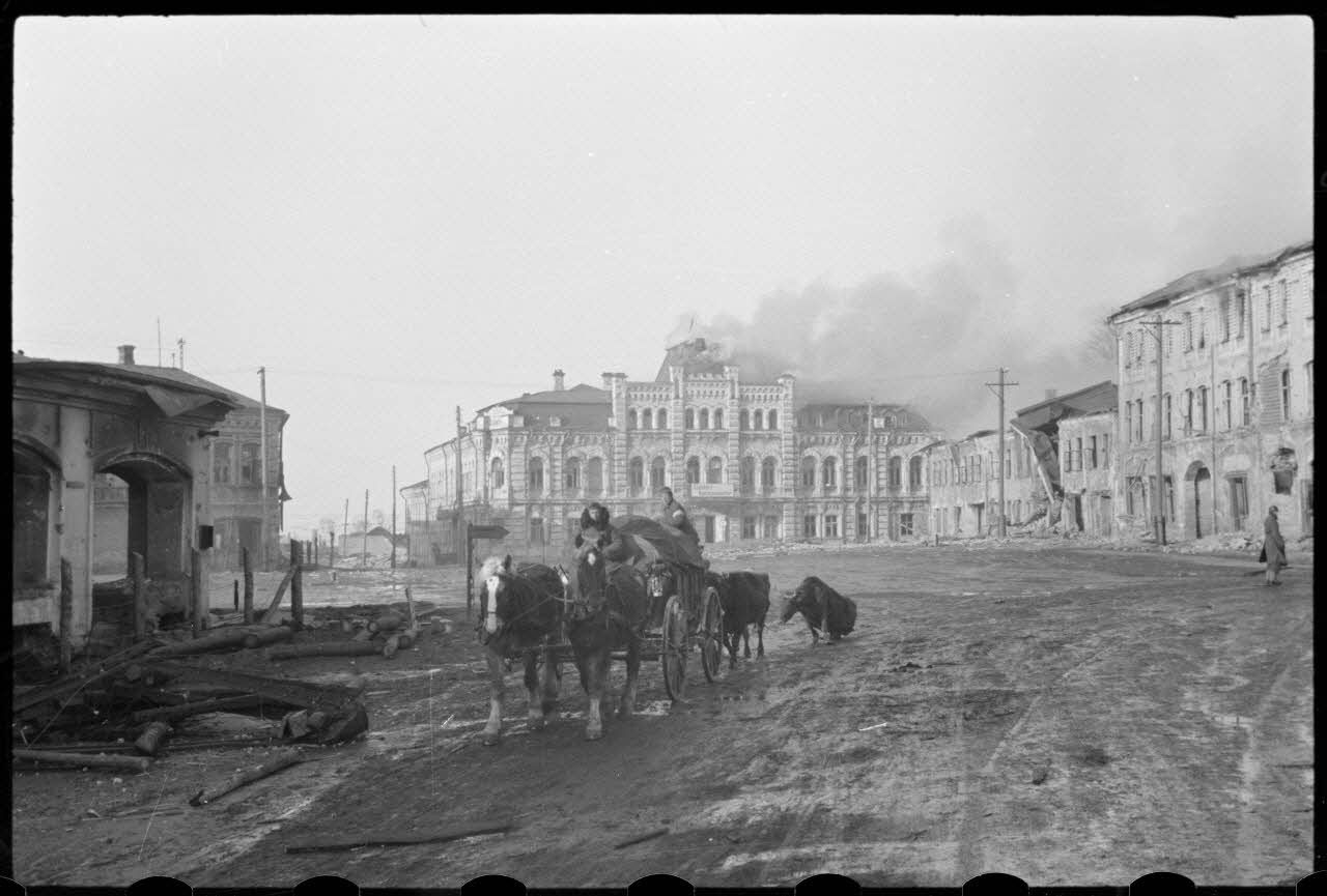 Le centre-ville de Wjasma (Viazma) durant la retraite allemande.