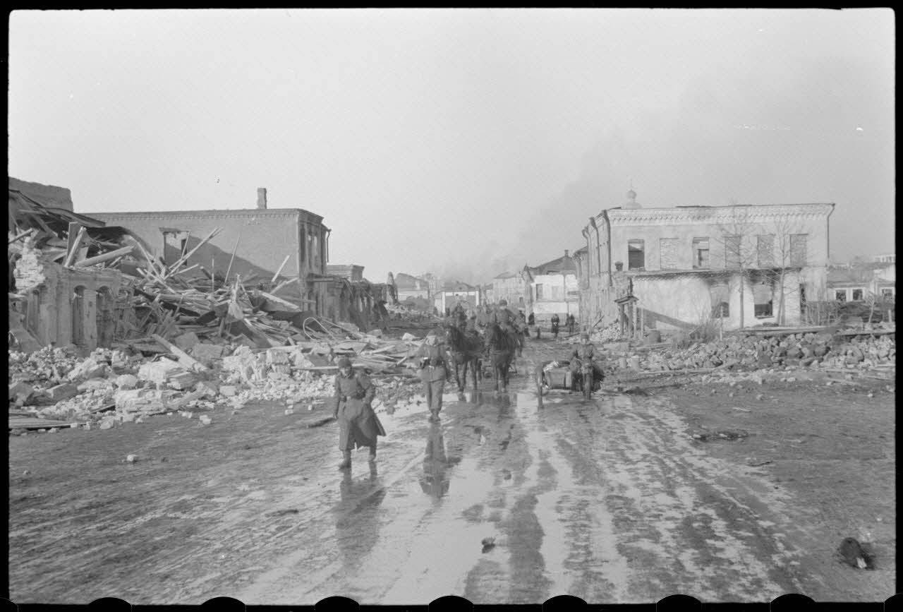 Le centre-ville de Wjasma (Viazma) durant la retraite allemande.