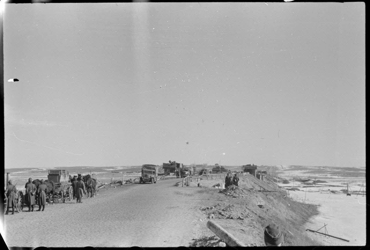 Sur la route entre Wjasma (Viazma) et Smolensk, durant l'opération Büffelbewegung, un combat aérien stoppe la retraite du convoi hippomobile allemand.