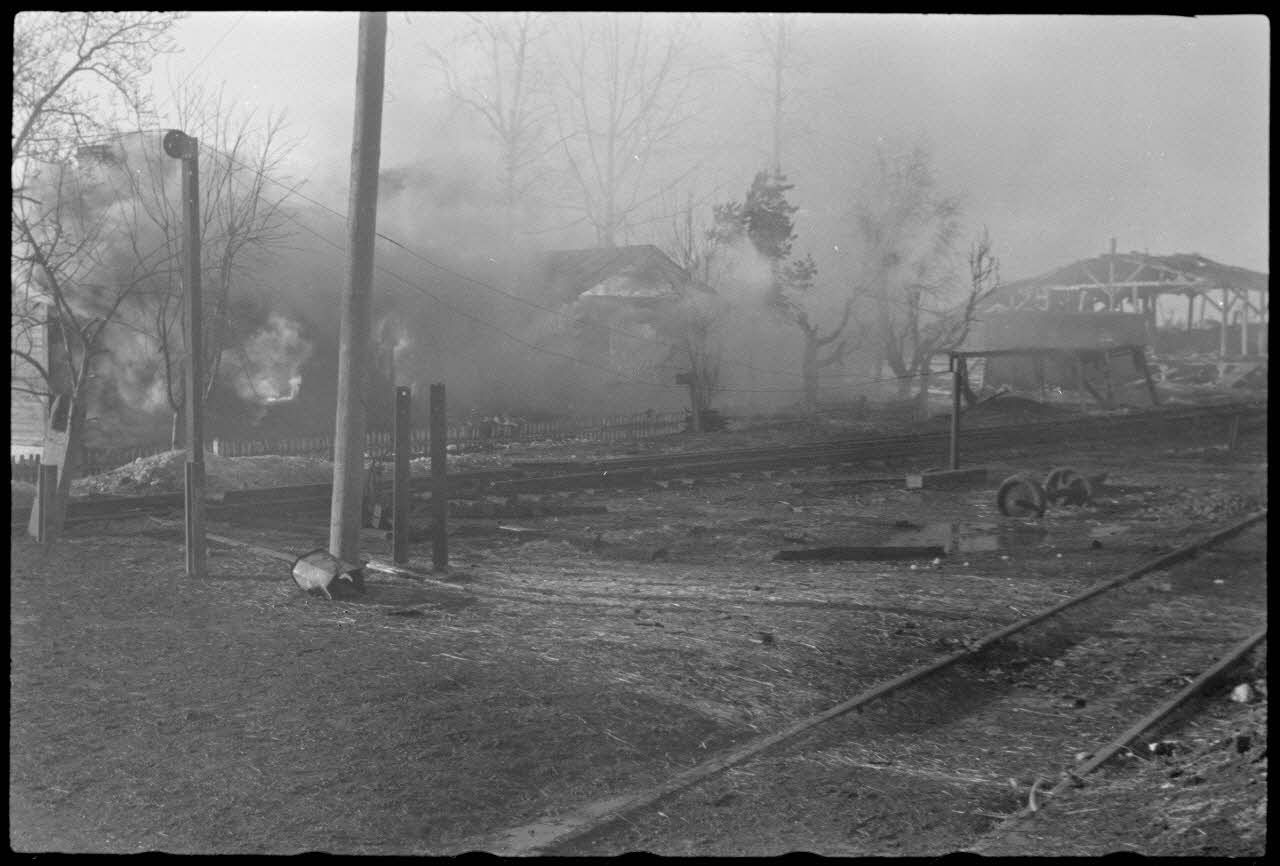 Une gare ferroviaire récemment détruite dans le secteur de Wjasma.