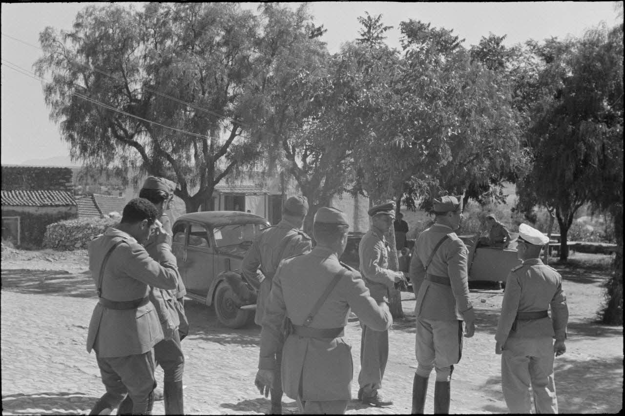 A Kastelli (Crète), un général de brigade de l'armée de terre italienne visite une exposition d'objets confectionnés par les soldats allemands.