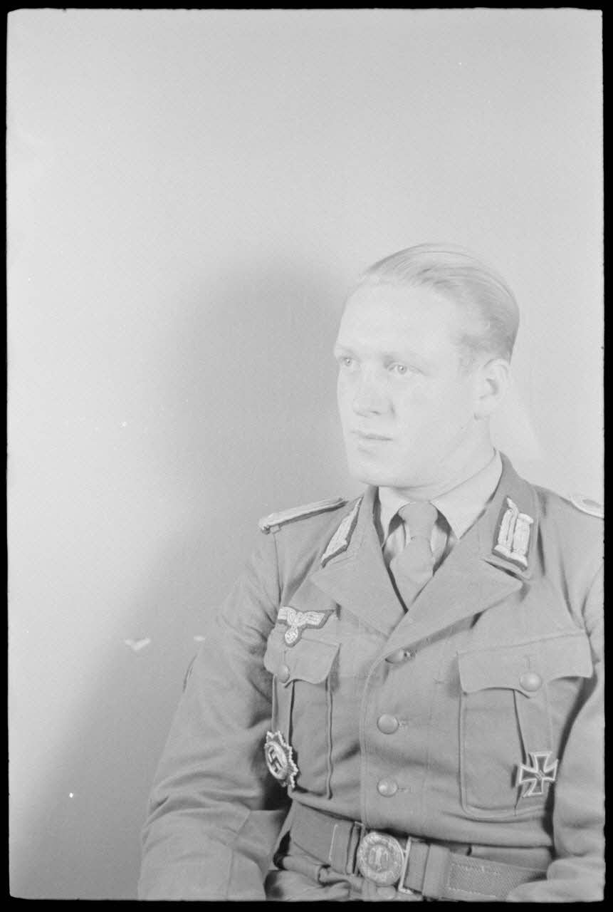 Ce lieutenant décoré de la croix allemande pourrait être l'Oberleutnant Heinz Taddicken, membre de la 22 Infanterie-Division.