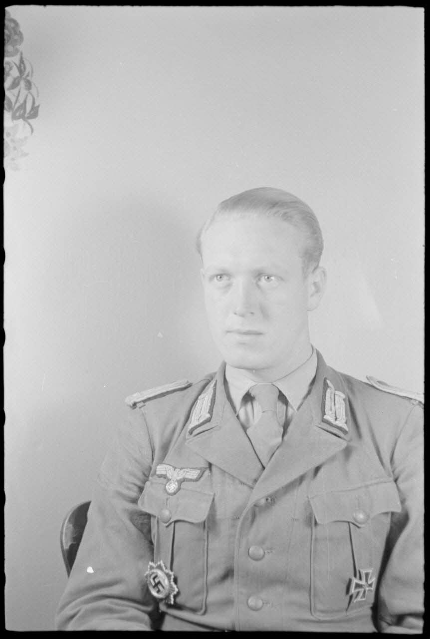 Ce lieutenant décoré de la croix allemande pourrait être l'Oberleutnant Heinz Taddicken, membre de la 22 Infanterie-Division.
