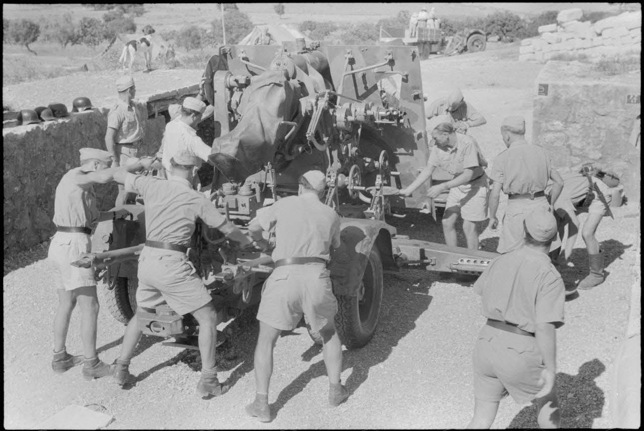 Instruction d'artilleurs italiens sur un canon de DCA 8,8 cm FlaK.