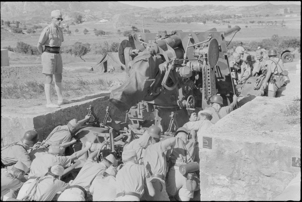Instruction d'artilleurs italiens sur un canon de DCA 8,8 cm FlaK.