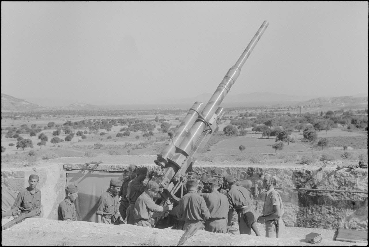 Instruction d'artilleurs italiens sur un canon de DCA 8,8 cm FlaK.