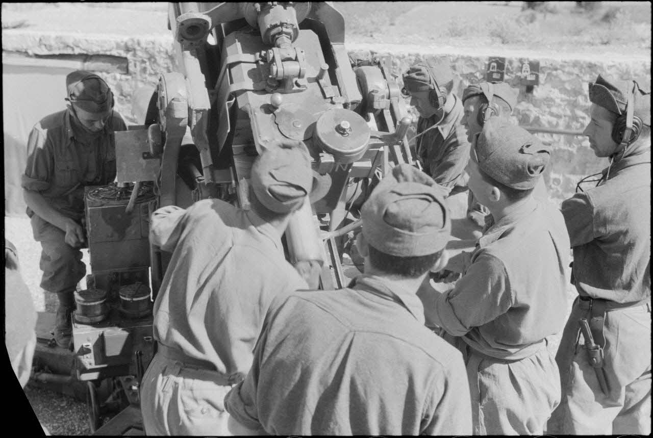 Instruction d'artilleurs italiens sur un canon de DCA 8,8 cm FlaK.