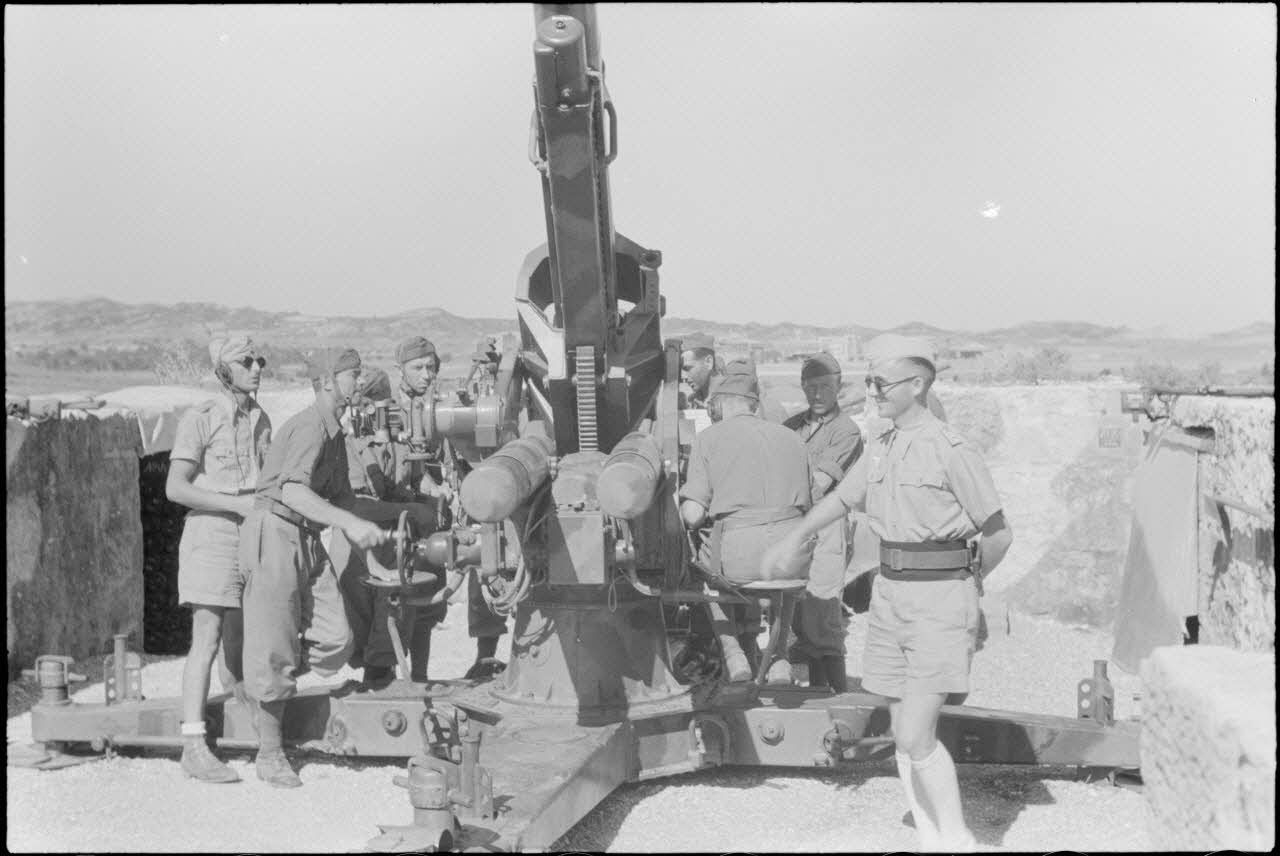 Instruction d'artilleurs italiens sur un canon de DCA 8,8 cm FlaK.