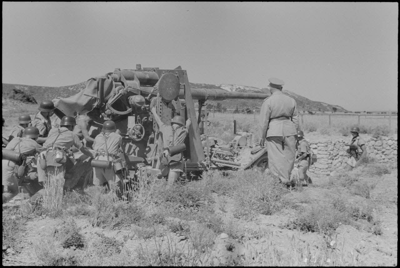 La mise en place d'une batterie de 8,8 cm FlaK et de ses canons de 2 cm FlaK pour sa protection.