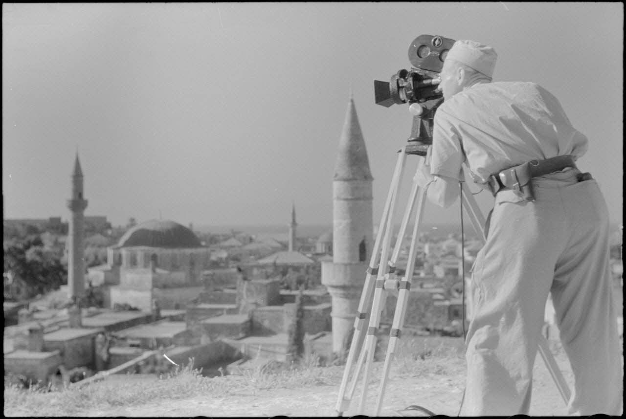Le caméraman Hermann Dressler filme la ville de Rhodes.