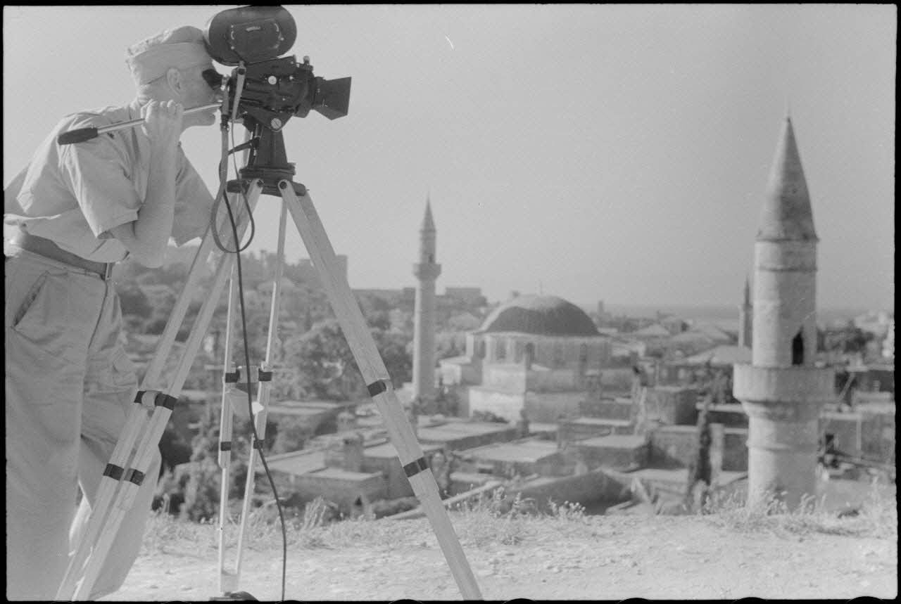Le caméraman Hermann Dressler filme la ville de Rhodes.