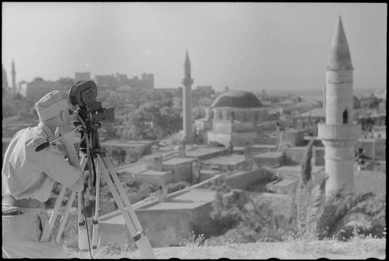 Le caméraman Hermann Dressler filme la ville de Rhodes.