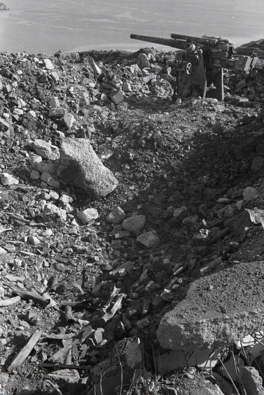 Sur les hauteurs de Meraviglia ('île de Leros), le canon défendu par des troupes italiennes et britanniques.