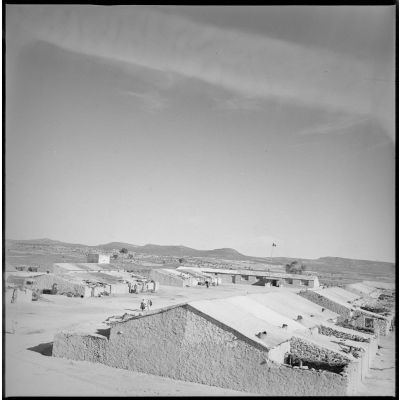 Dans le centre de regroupement, on peut voir l’édification d'un village avec ses nouvelles habitations, des khaïmas à proximité du chantier, l’école ainsi qu’un panneau d’information servant à l’action psychologique du secteur.