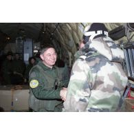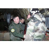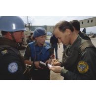 Un pilote du COTAM aidé par un médecin anglais compte le fret médical sous les yeux d'un commandant…