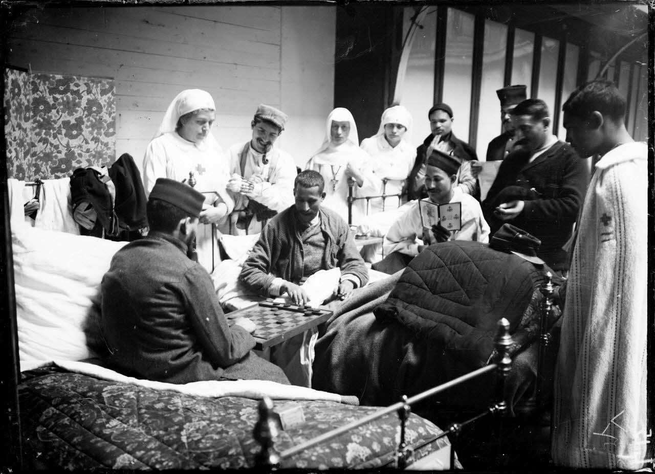 Nogent-sur-Marne. Hôpital colonial. Lecture du journal aux blessés.