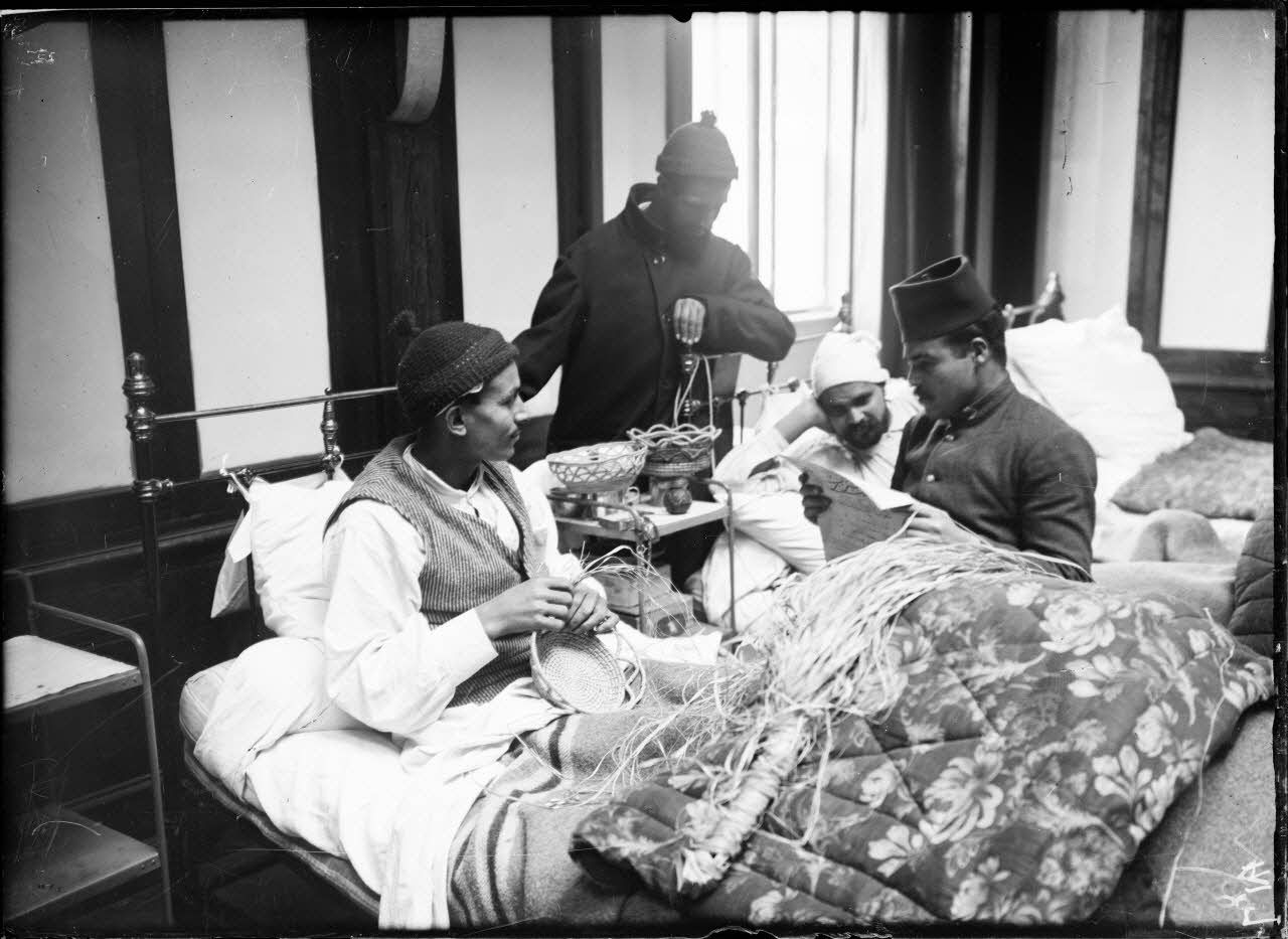 Nogent-sur-Marne. Hôpital colonial. Lecture du journal aux blessés.