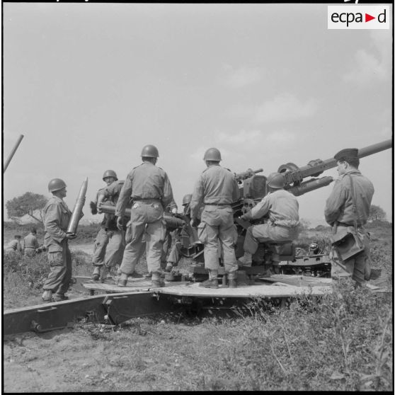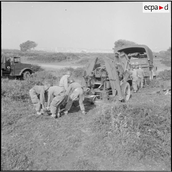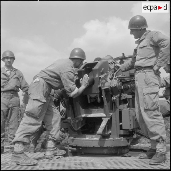 Alger. 411e régiment anti-aérien (RAA). Entraînement sur les canons.