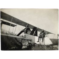 [Capitaine Luc-Pupat appuyé à un avion. Deux…