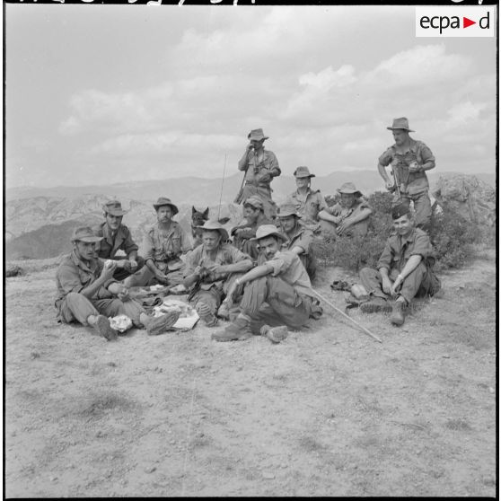 Progression à travers le djebel : court instant de repos.