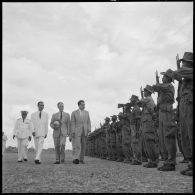 A leur arrivée à Siem Reap, M. Nixon, vice-président des Etats-Unis, Donald Heath, ambassadeur des…
