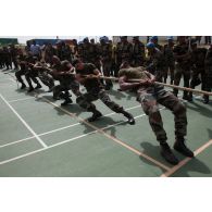 Cette épreuve de tir à la corde oppose plusieurs groupes de nationalités différentes au sein de la…
