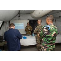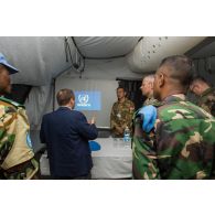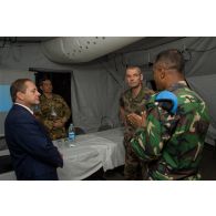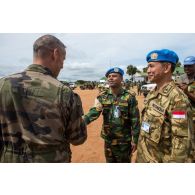 Le comité d'accueil est également composé de casques bleus bangladais et indonésiens.