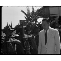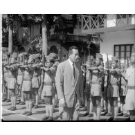 A Vientiane (Laos), le haut-commissaire de la République M. Léon Pignon est accueilli à sa descente…