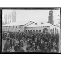 Koritza. Dans un cimetière turc, femmes, enfants,…