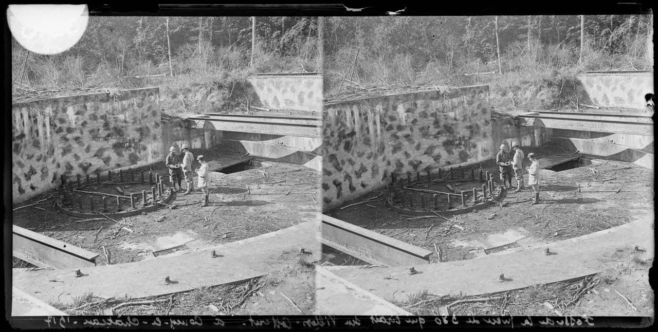Fosse de la pièce de 380 qui tirait sur Villers-Cotterêts, à Coucy-le-Château, 1917. [légende d'origine]