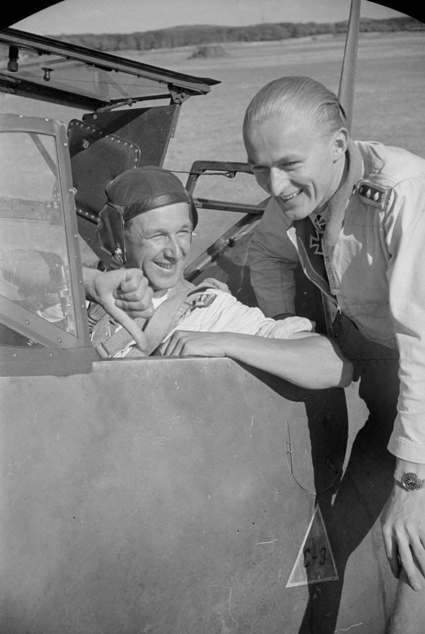 Les sous-officiers (Oberfeldwebel) Georg Schentke et Eberhard von Boremski (assis dans le chasseur Bf-109).