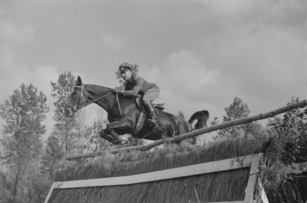Visite chez le commandant Rudolf Lippert et cavaliers allemands dans un parcours d'obstacles.