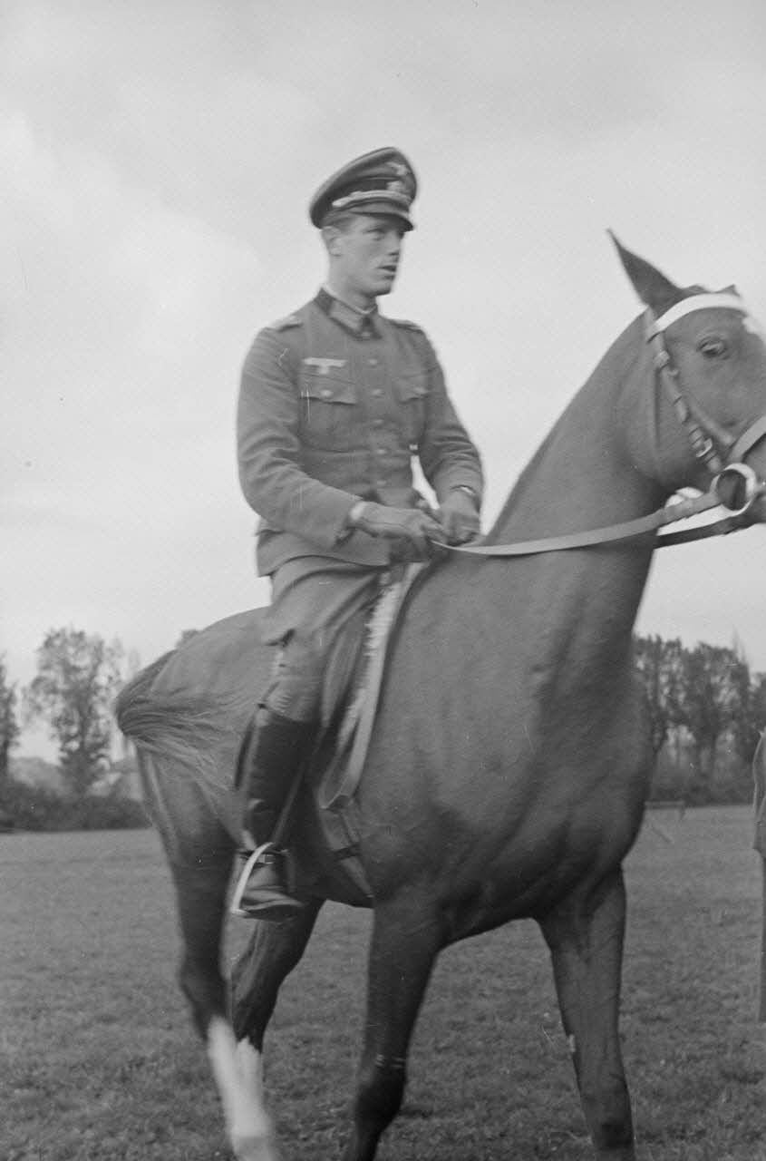 Un officier et sa monture, il pourrait s'agir du lieutenant Heinz Pollay (à confirmer).