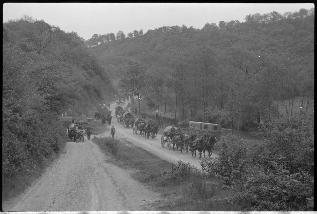 Une colonne hippomobile de l'armée de terre allemande dans le secteur de Harmor (Belgique).