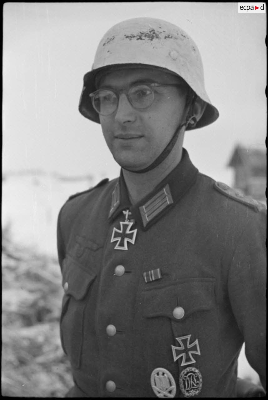 Portrait d'un commandant (Major) Josef-Georg Mulzer, titulaire de la croix de chevalier de la croix de fer et des feuilles de chêne (obtenue le 10/01/1944).