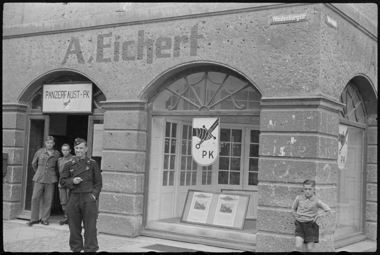 Les bureaux de la Pk.697 et du journal Panzerfaust situés entre la rue Hinderburgstrasse et la place Markplatz à Eydtkau en Prusse-Orientale.