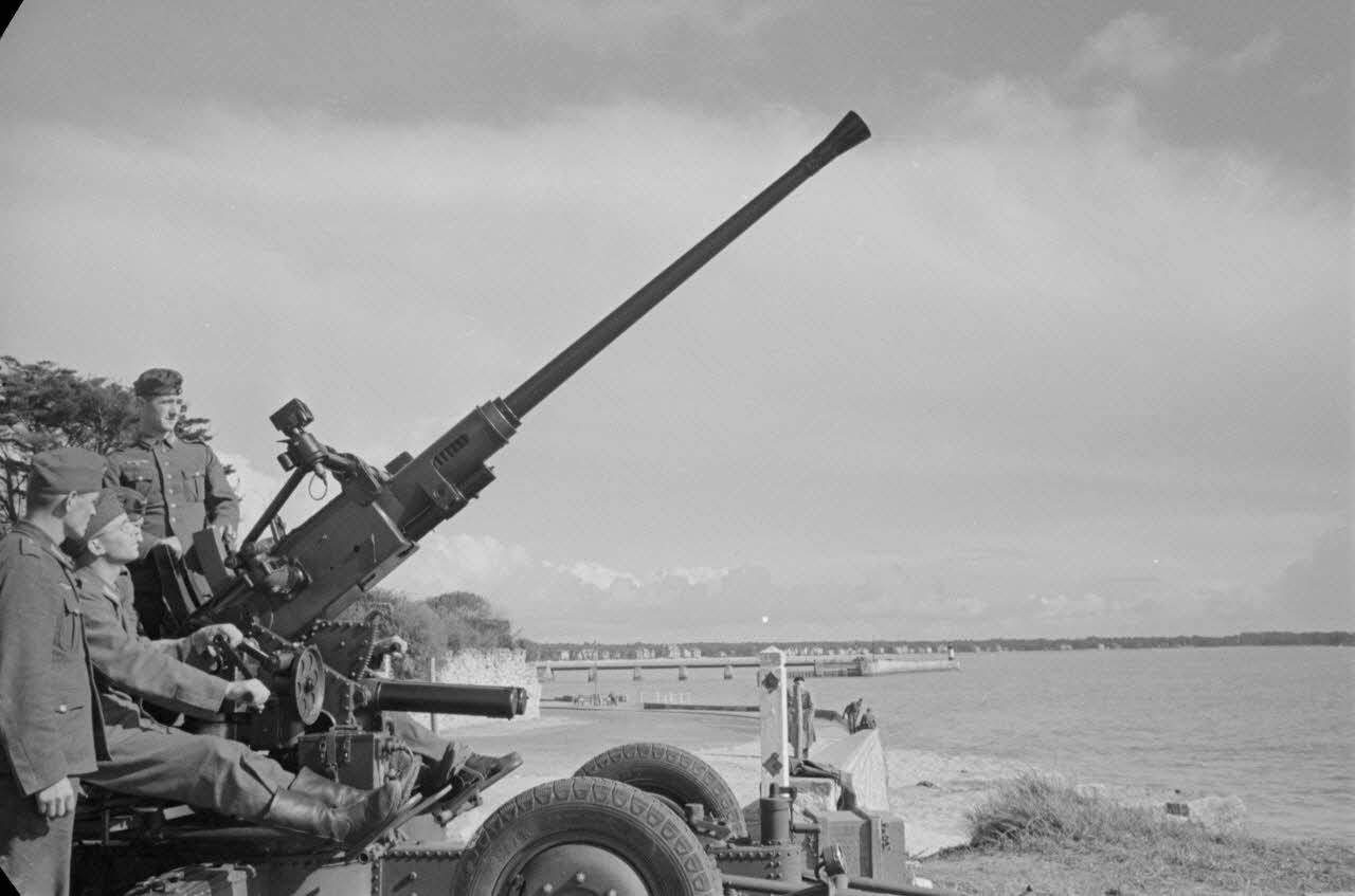Un canon antiaérien Bofors de 40 mn capturé et positionné non loin du phare de la Coubre.