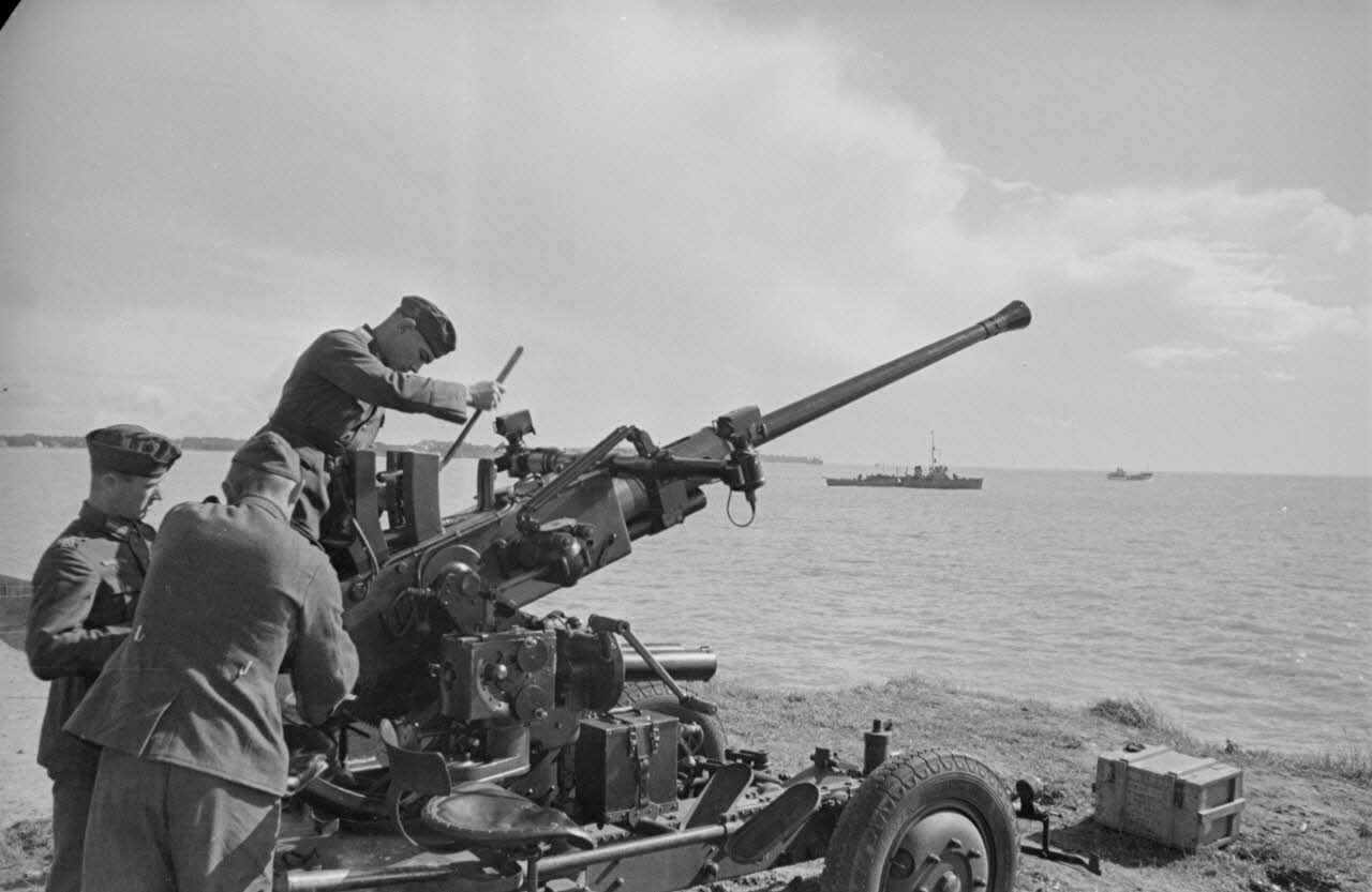 Un canon antiaérien Bofors de 40 mn capturé et positionné non loin du phare de la Coubre.