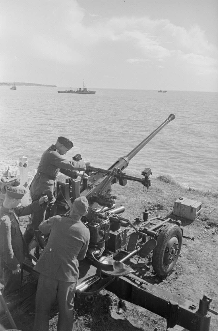 Sur le terrain d'aviation de Royan, les troupes allemandes récupèrent des avions de chasse Morane Saulnier Ms.406 C1, ainsi que les pièces détachées conservées dans les hangars du terrain. Sur la côte, des soldats allemands manipulent un canon antiaérien Bofors. Des soldats allemands montent dans le phare de la Coubre.