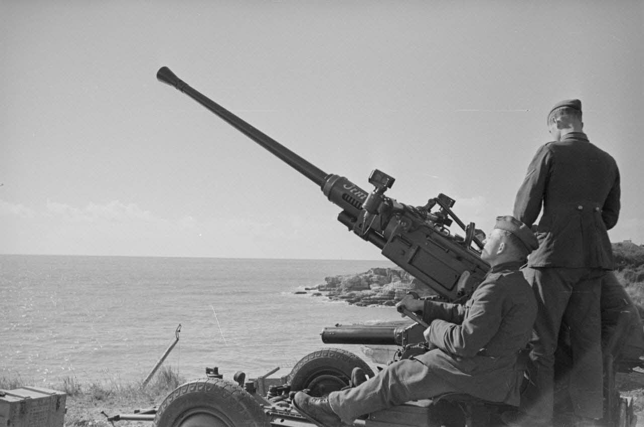 Un canon antiaérien Bofors de 40 mn capturé et positionné non loin du phare de la Coubre.