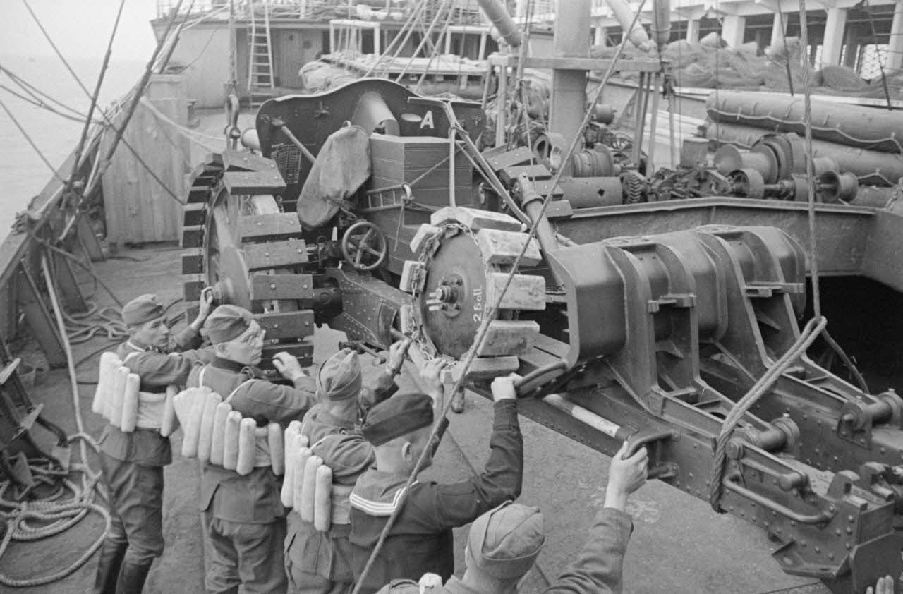 Note : Les dates du reportage correspondent aux premiers entrainement de l'opération Seelöwe et l'abandon du projet. Même si il n'existe pas véritablement de preuve de l'abandon du projet de débarquement, les esprits des dirigeants sont ailleurs, notamment tournés sur l'opération Barbarossa. Toutefois, la présence du cargo "Leontios Teryazos" dans le reportage DAT 3673 permet de préciser qu'il s'agit de manoeuvres de la fin septembre voire du début d'octobre 1940. En effet, le bâtiment est capturé par la Kriegsmarine le 27 septembre 1940.