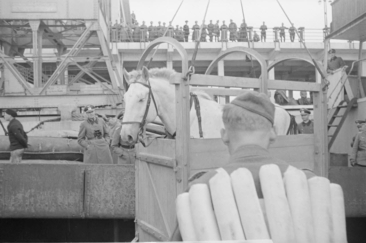 Dans le cadre de l'opération Seelöwe (lion de mer), l'entrainement au chargement d'un cargo (infanterie et matériels).