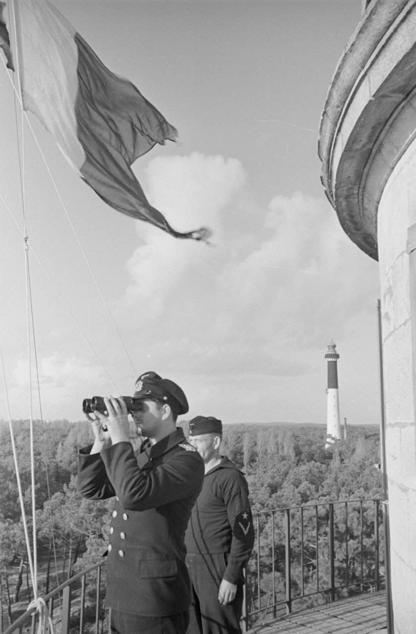 Le phare de la Courbe est utilisé par l'artillerie allemande comme un poste d'observation et comme un poste de direction de tir pour une batterie positionnée non loin du phare. Les canons de 15 cm sont mis en batterie dans des encuvements et camouflés par des filets. Un marin allemand discute avec un marin italien de la "Regia Marina".