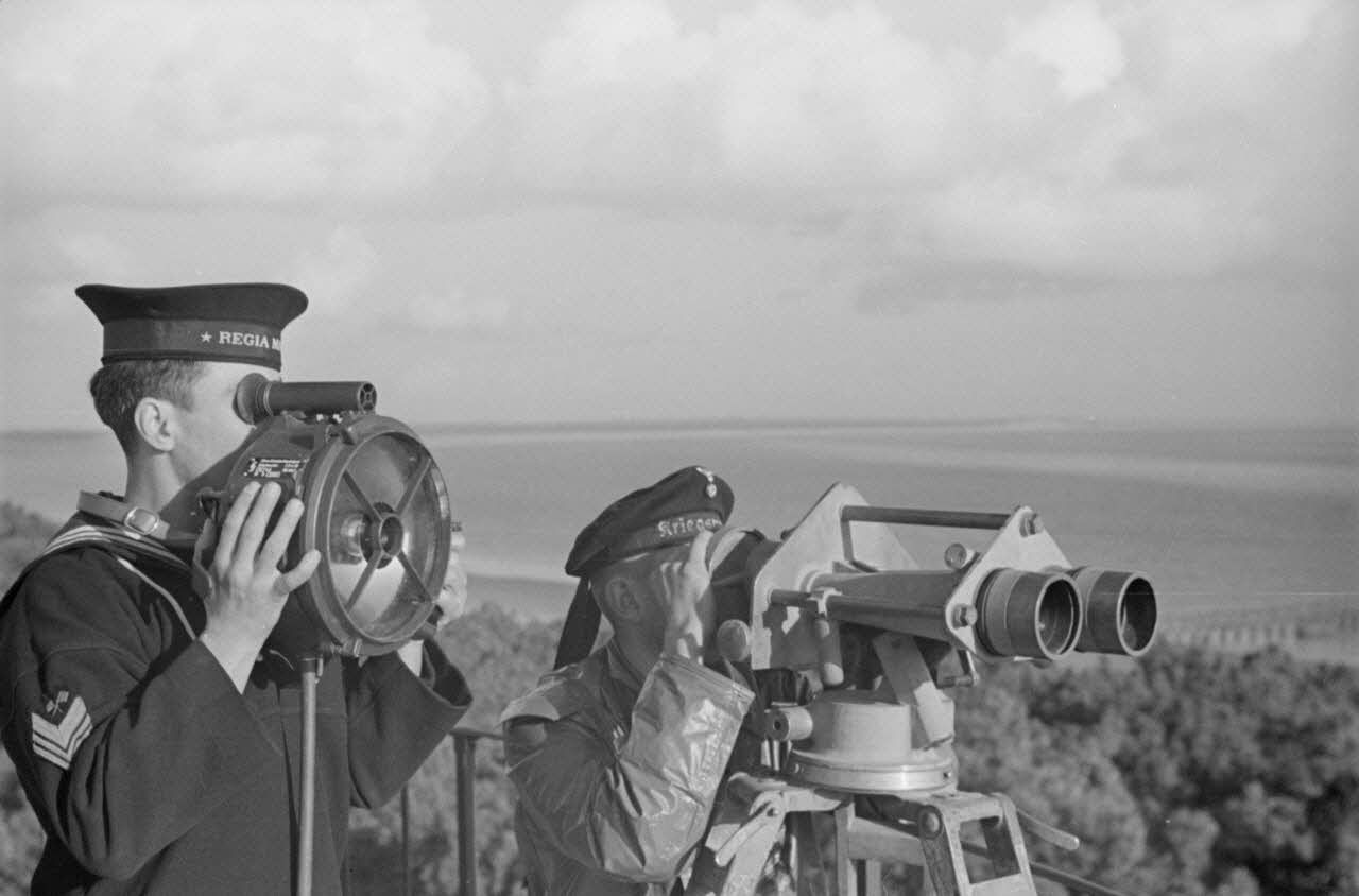 Le phare de la Courbe est utilisé par l'artillerie allemande comme un poste d'observation et comme un poste de direction de tir pour une batterie positionnée non loin du phare. Les canons de 15 cm sont mis en batterie dans des encuvements et camouflés par des filets. Un marin allemand discute avec un marin italien de la "Regia Marina".