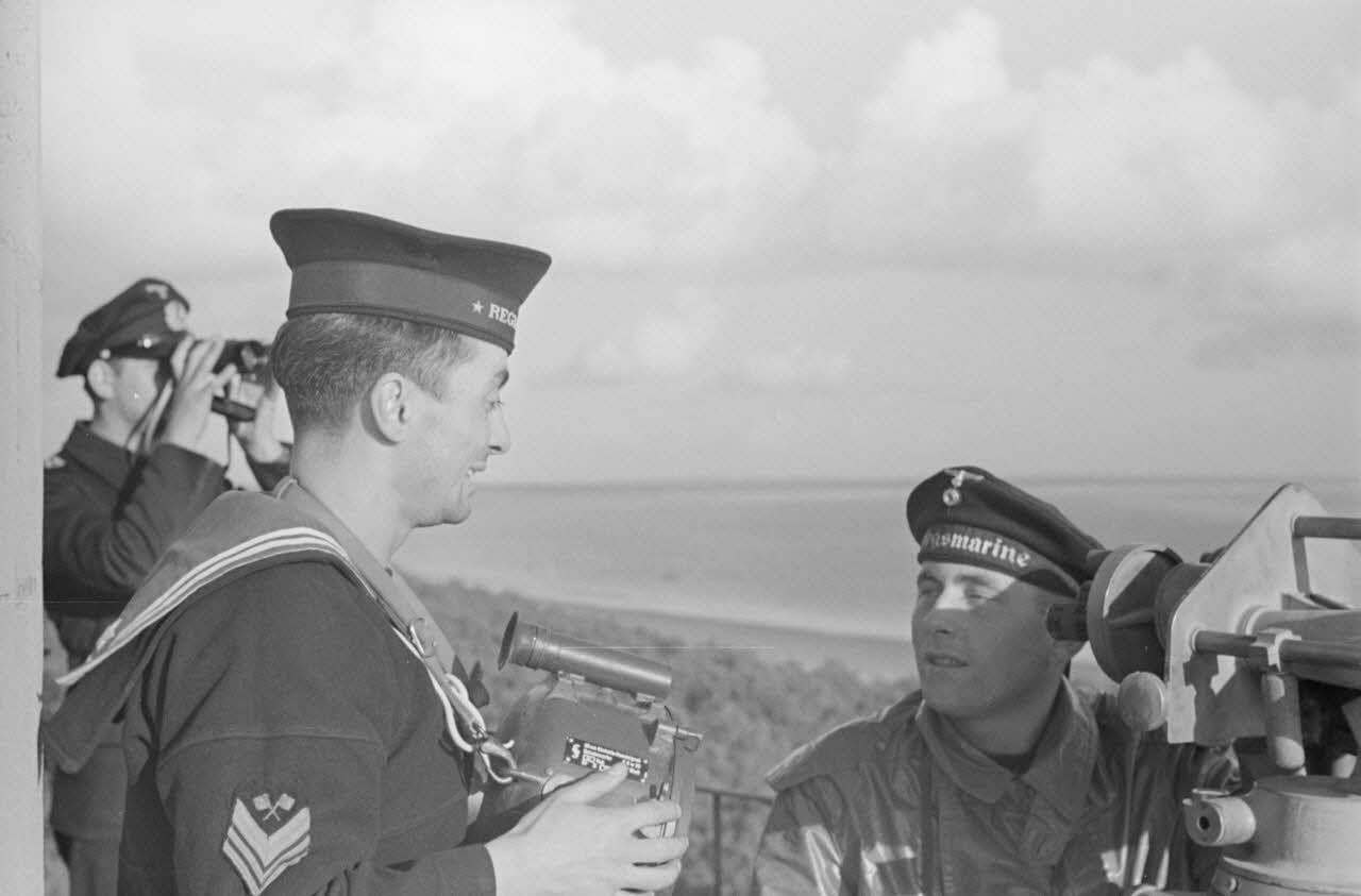 Le phare de la Courbe est utilisé par l'artillerie allemande comme un poste d'observation et comme un poste de direction de tir pour une batterie positionnée non loin du phare. Les canons de 15 cm sont mis en batterie dans des encuvements et camouflés par des filets. Un marin allemand discute avec un marin italien de la "Regia Marina".