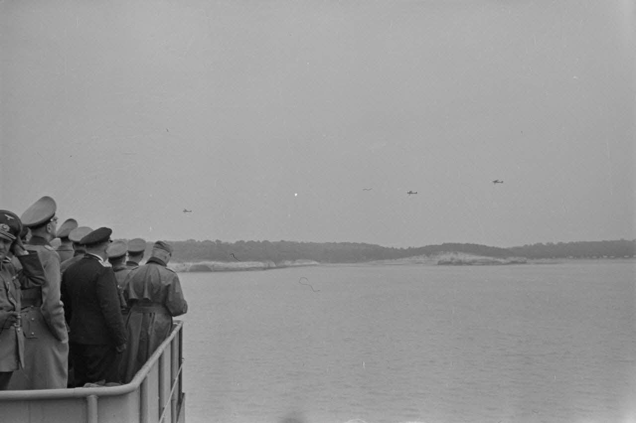 Le général Friedrich Dollmann et l'état-major de la 7e armée allemande (AOK 7) sur le pont d'un navire lors de manoeuvres d'exercice (opération Seelöwe).