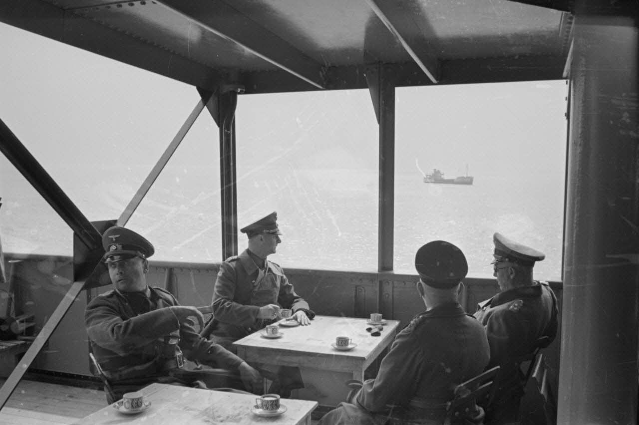 Lors de manoeuvres en prévision de l'opération Seelöwe, le général Friedrich Dollmann et les principaux officiers de l'état-major de la 7e armée allemande (AOK 7) sur le pont d'un navire.