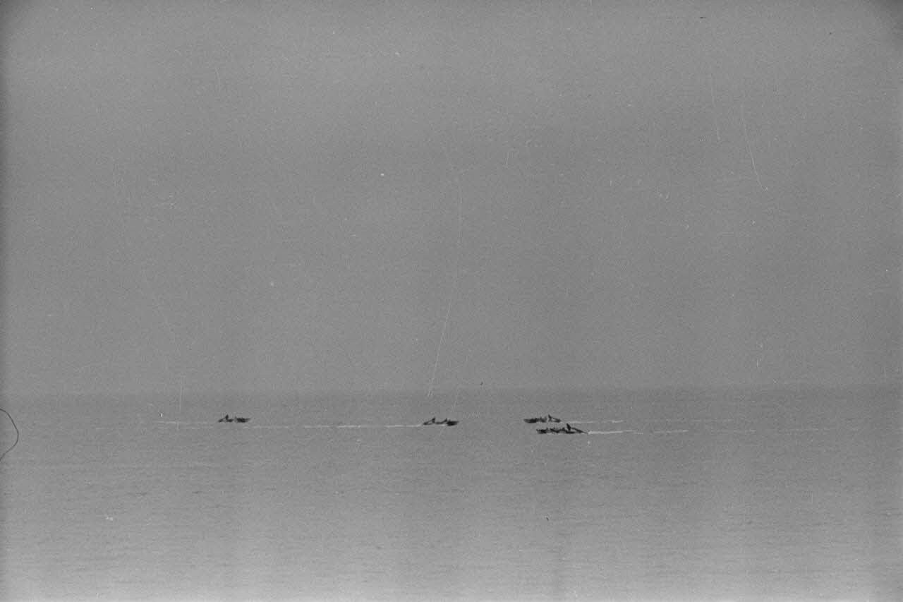 Progression de bateaux d'assaut allemands (Sturmboote) chargés de la protection des autres barges ou pontons de débarquement.