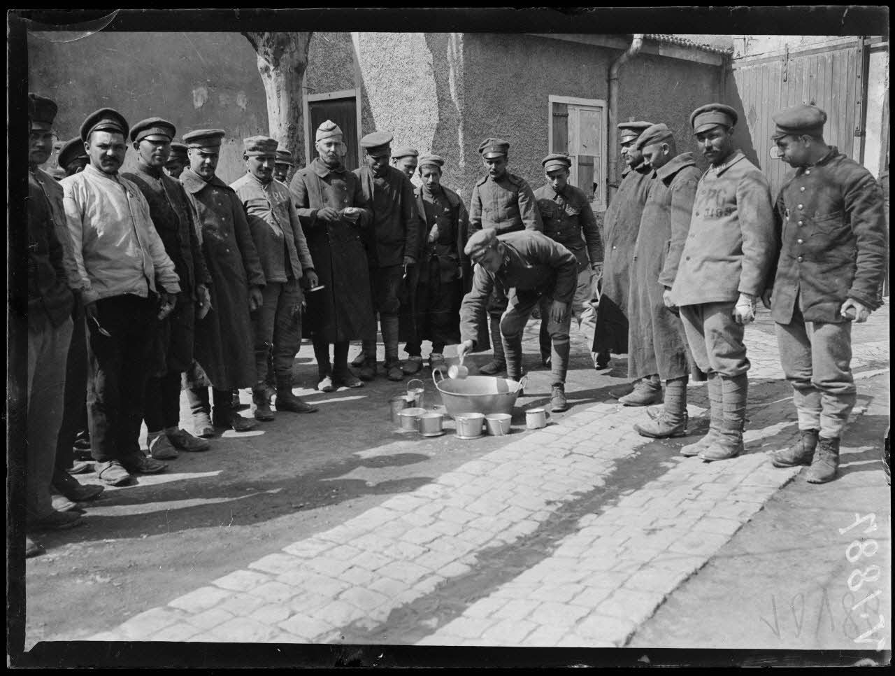 Nîmes (Gard). Dépôt de prisonniers bulgares. Distribution de la soupe. [légende d'origine]