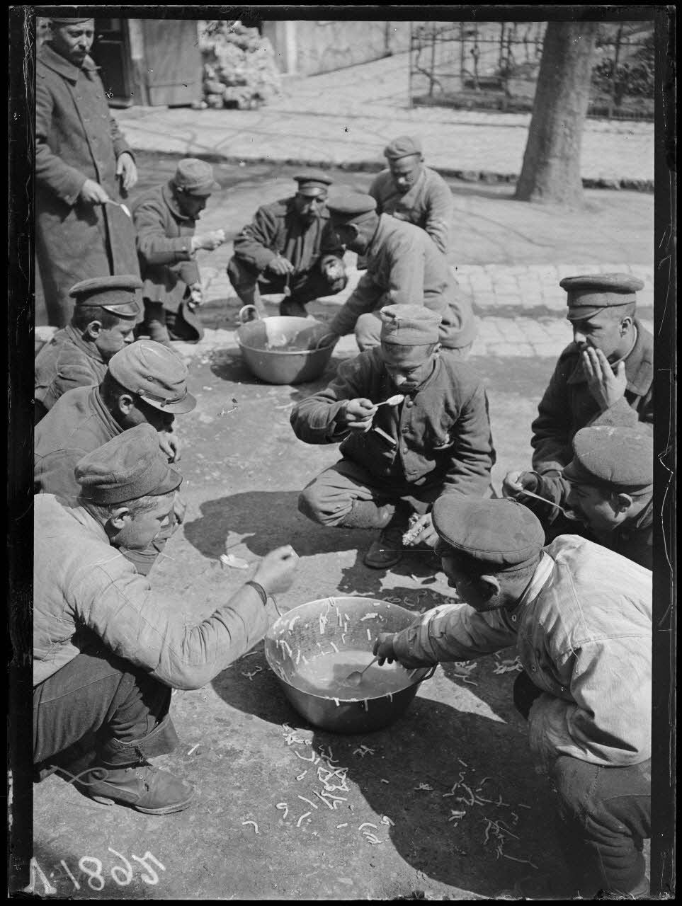 Nîmes (Gard). Le repas des prisonniers bulgares.